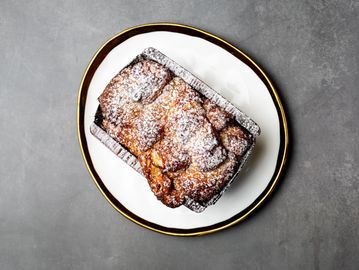 Banana bread, banana caramel, banana whip, velvet spray