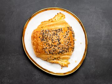 Croissant dough, egg wash, jalapeno cream cheese filling, everything seasoning.